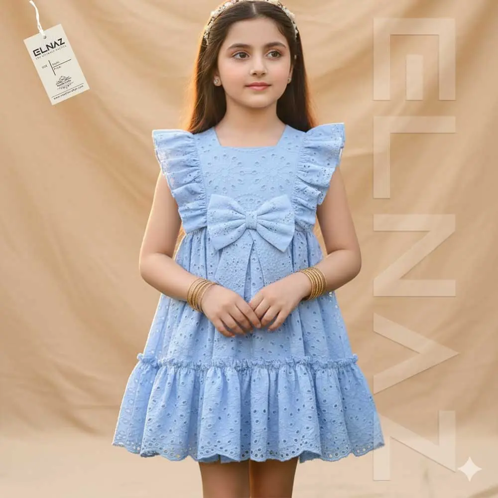 Elevate your little girl's wardrobe with our luxurious eyelet ruffle dress, designed for the modern Pakistani kids' fashion scene. Crafted from breathable, high-quality fabric, this dress features intricate floral eyelet patterns, delicate ruffle sleeves, and a stylish tiered skirt that’s perfect for both festive occasions and high-end lifestyle shoots.